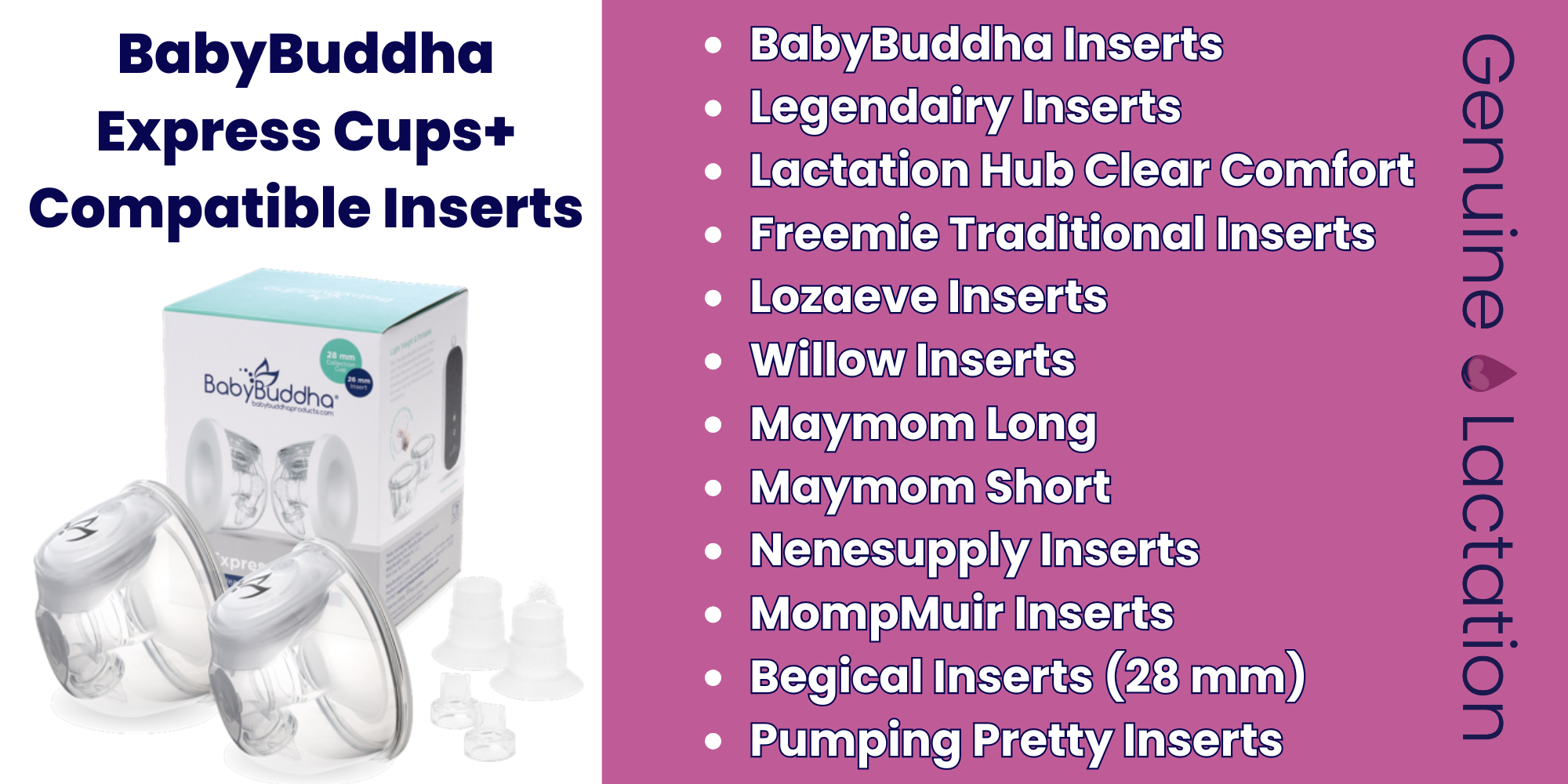 Zomee Cups and Legendairy cups have parts that look almost identical to the silicone parts of the Baby Buddha cups- but the BabyBuddha Express Cups+ silicone has been modified and adapted to perform optimally with the BabyBuddha pump. Interchanging parts will alter your cups performance.