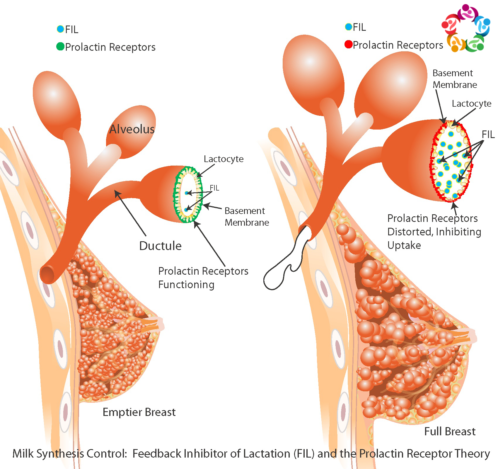 This is how the milk regulation process works as well. However, it's on a constant cycle happening multiple times each day instead of just once a year. When milk builds up in the breast, the whey protein called Feedback Inhibitor of Lactation (FiL) stacks up. The more FiL collects in the breast, the less milk the body produces next time. If you drain the breasts fully and frequently, the lower amount of FiL tells your body more milk is needed.
