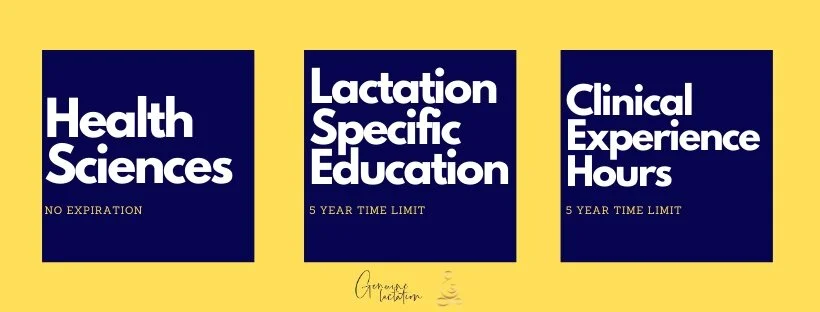 Clinical experience hours also have a five-year time limit. The number of hours is between 300-1000 hours of clinical experience depending on the pathway you are on. This is an area where a lot of people struggle as they have a deadline to accomplish this, and for some people, gathering these hours requires creativity and a plan. The rules for what counts are very clearly spelled out, and some require pre-approval. If you are considering even possibly going for the IBCLC credential, I recommend taking a solid look at all the requirements so that you have a plan in place to make this happen if you want it.